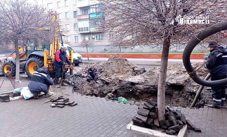 Під дощем всі в багнюці: фахівці водоканалу ліквідовують аварію в центрі Слов’янська (фоторепортаж)