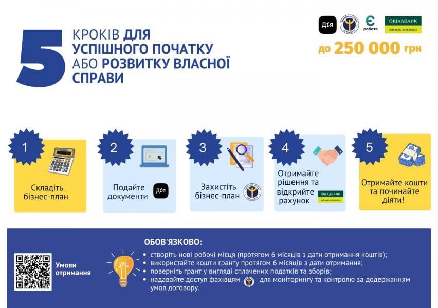 Мінімальна сума гранту – 50 тис. грн, максимальна – 250 тис. грн. Його розмір залежить від кількості створених робочих місць: