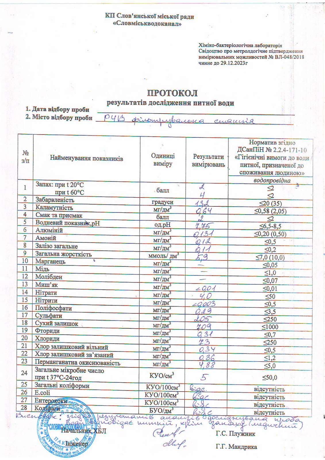 На данный момент водопроводная вода фильтруется и проходит весь технологический процесс, который не нарушается ни в «Славгорводоканале», ни в КП «Вода Донбасса». Сертифицированная лаборатория «Славгорводоканала» ежедневно проводит замеры и проверяет качество воды в водопроводных сетях. В них выявляется увеличение концентрации аммония, но она не превышает предельные нормы. Сейчас показатели идут на спад.