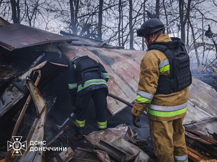 Фотографіями з місця обстрілу поділилося Головне управління ДСНС України у Донецькій області.