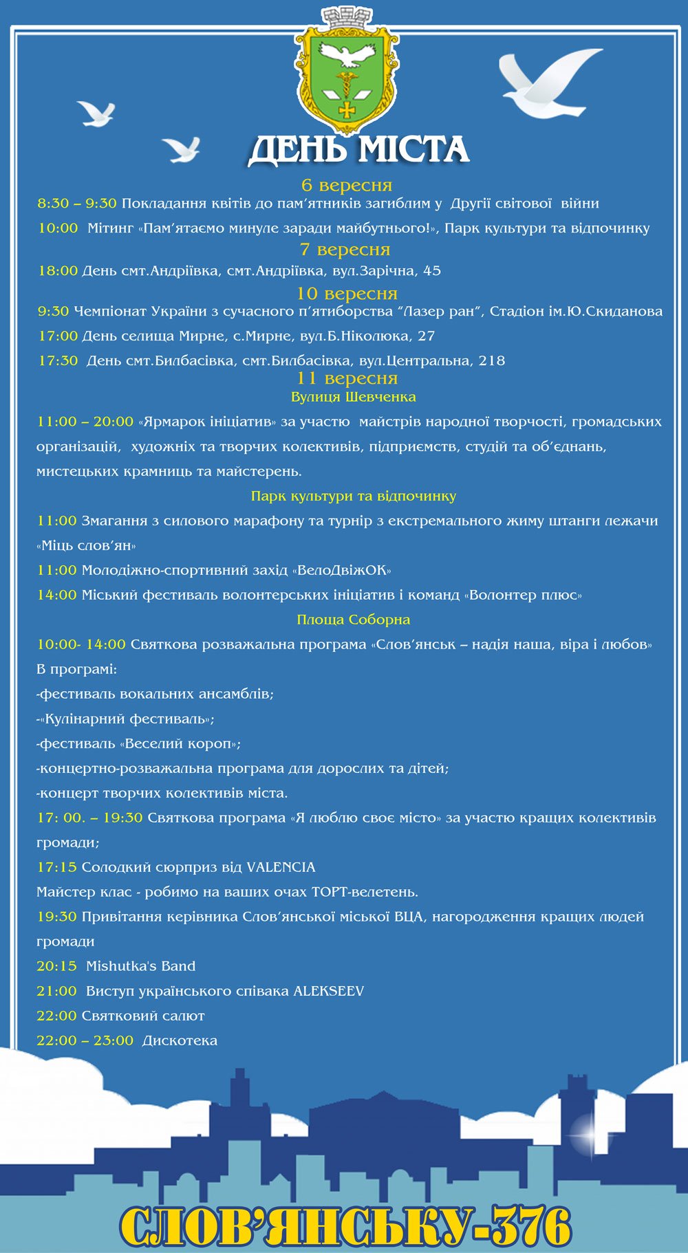 Праздничная афиша на День города Славянска