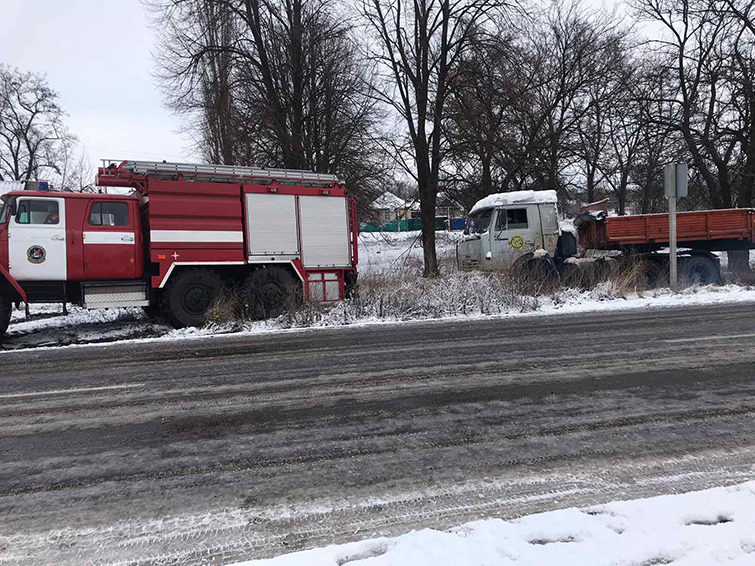 Також, сьогодні об 10:28 надійшло повідомлення про те, що у Слов’янському районі смт. Билбасівка в кінці вулиці Покровській водій вантажного автомобіля з’їхав у кювет. Рятувальники мпк «Черкаської об’єднаної територіальної громади» за допомогою буксирувального тросу та пожежної автоцистерни витягли вантажний автомобіль на розчищену дорогу. Водій подякував за професійну та оперативну допомогу.