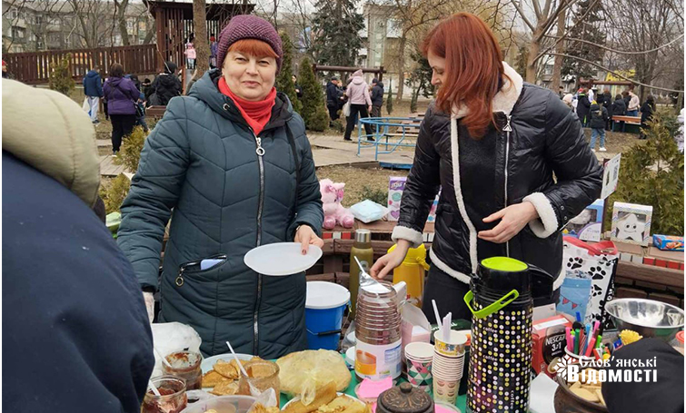 Всі учасники також мали можливість поласувати млинцями. Багато хто напік та приніс із собою, аби пригощати присутніх. Діти ж додатково отримали солодкі подарунки – печиво, яке передали благодійники з Дніпра.