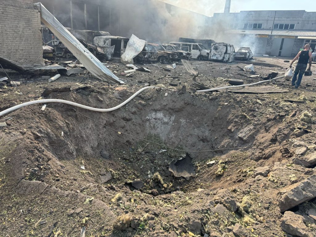Влучання зафіксовано у центральній частині міста, в районі автовокзалу. Внаслідок атаки пошкоджено торговельний комплекс, станцію техобслуговування (СТО), навчальний заклад та адміністративну будівлю.