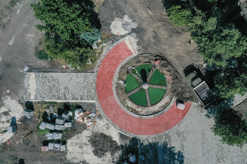“Донецька область. Слов’янськ. Реконструкція стадіону імені Юрія Скиданова”, – лаконично подписаны фото.
