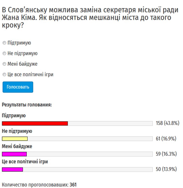 На сайті нашого видання було проведено опитування стосовно ймовірної заміни секретаря міської ради Жана Кіма. Саме це планували зробити депутати, які об’єдналися у групу «Опозиційна платформа – за життя» у міській раді.