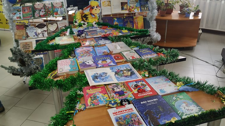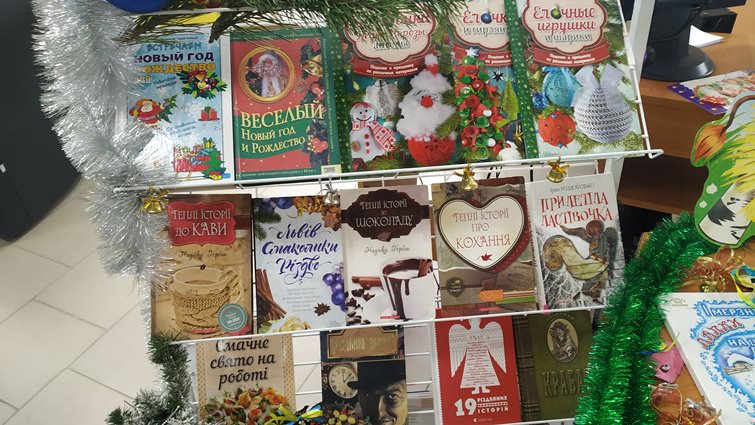 Співробітники бібліотеки відібрали до експозиції книжки, що розповідають про історію свят, традиції святкування, а також збірки порад щодо святкування або ж рецептів святкових страв. Також тут зібрані новорічні та різдвяні казки.