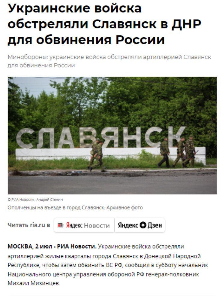 А ось російська пропаганда, зокрема державне інформаційне агентство РИА Новості відверто генерує фейки, щодо ситуації у Слов’янську.