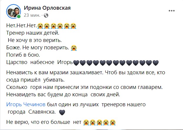 Сегодня погиб в бою Игорь Чечинов, один из лучших тренеров Славянска