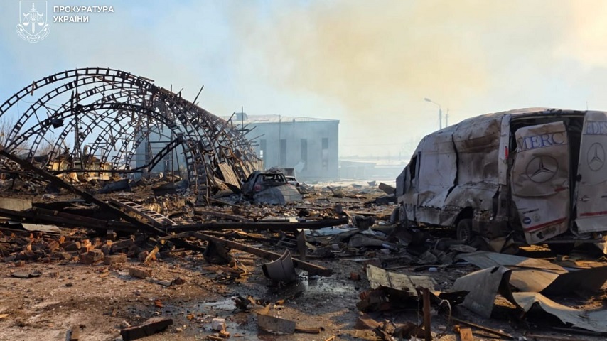 Атака спричинила значні руйнування цивільної інфраструктури. Пошкоджено та зруйновано два складські приміщення, адміністративну будівлю оптової бази, гаражне приміщення СТО, магазин, ангарні споруди та приміщення автозаправки. Ураження зазнали 14 приватних житлових будинків і два багатоповерхові будинки, пошкоджено контактні мережі тролейбусів та 28 автомобілів.