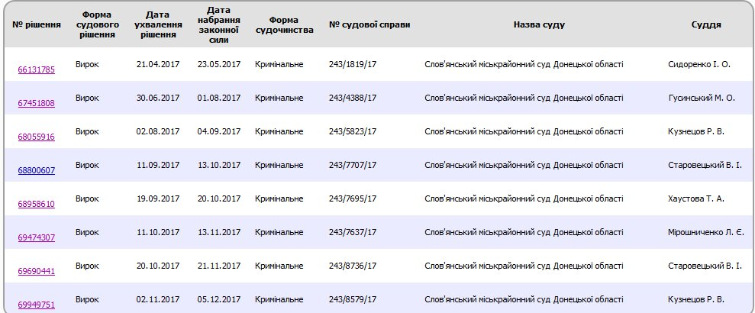 Согласно реестру судебных решений в 2017 г. в Славянском горрайонном суде было вынесено 8 приговоров по 110 статье ККУ. Ни один из преступников не получил реальный срок.