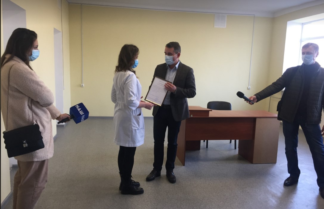 Сегодня два славянских медработника получили документы на жилье. В торжественной обстановке в актовом зале городской клинической больницы их вручил городской голова Вадим Лях.