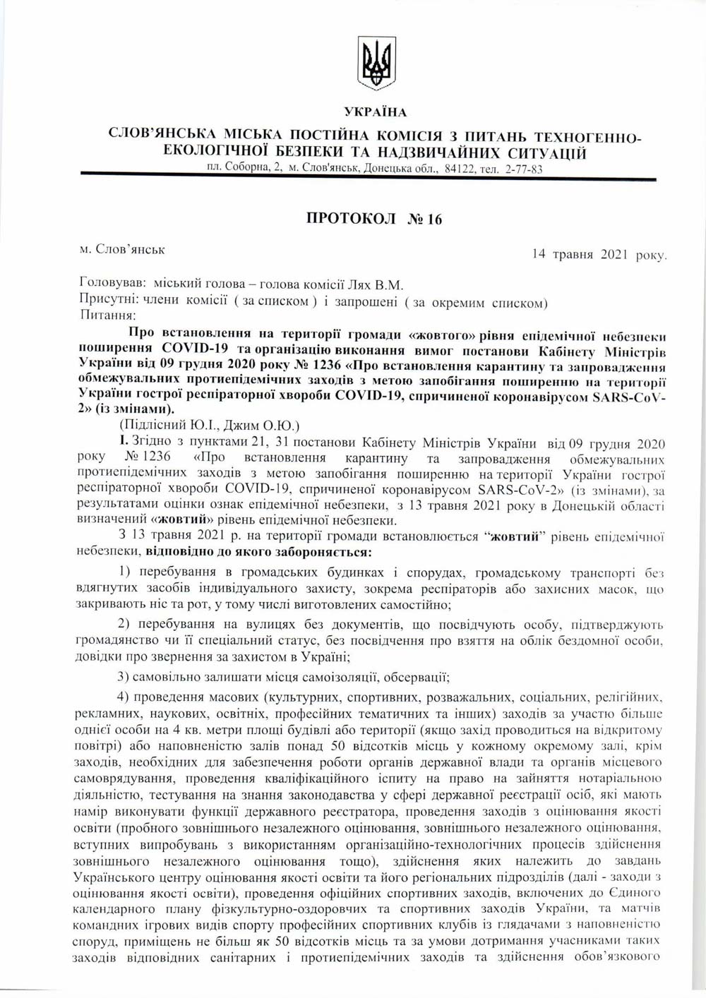 Протокол №35 Славянской городской постоянной комиссии по вопросам техногенно-экологической безопасности и чрезвычайных ситуаций опубликованна сайте Славянского городского совета.