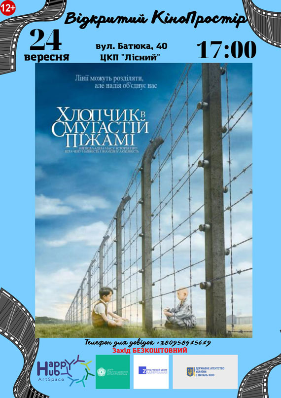 24 вересня о 17:00 (за адресою: вул. Батюка,40 (ЦКП Лісний)) відбудеться кінопоказ фільму “Хлопчик в смугастій піжамі”, присвяченого пам’яті жертв трагедії Бабиного яру.