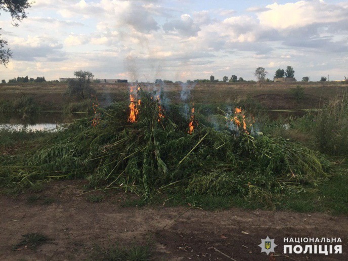 Рослини коноплі виявили під час аеророзвідки. Загалом поліцейськими вилучено з поля більше 7 тисяч наркорослин, які знищені шляхом спалення.