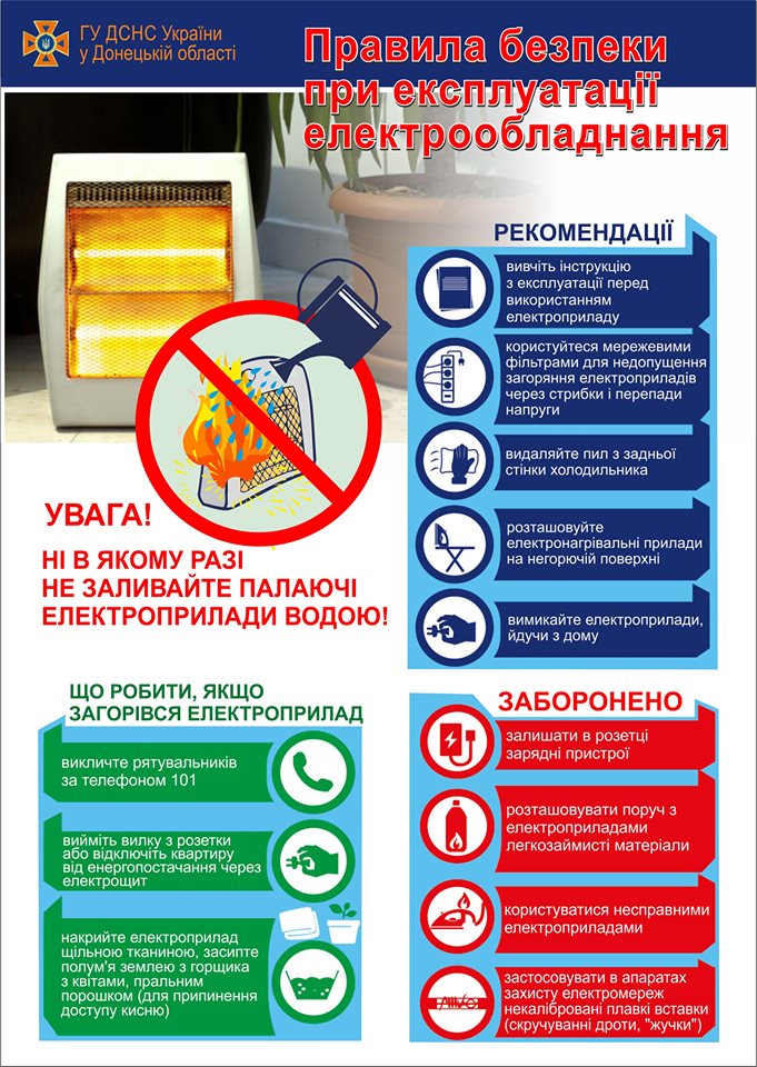Слов`янські рятувальники нагадують основні правила пожежної безпеки при використанні побутових електроприладів, дотримання яких допоможе вберегти від біди та уникнути пожежі: