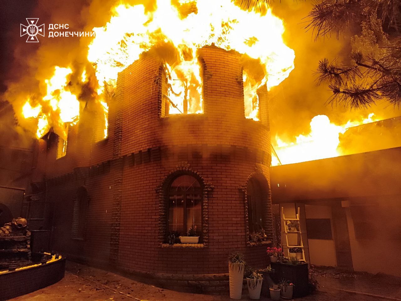 О 02:46 4 червня до Служби порятунку «101» надійшло повідомлення про пожежу у м. Слов’янськ Донецької області. Горіла будівля кафе «Шинок» у мікрорайоні Артема. Пожежу ліквідували тільки під ранок.