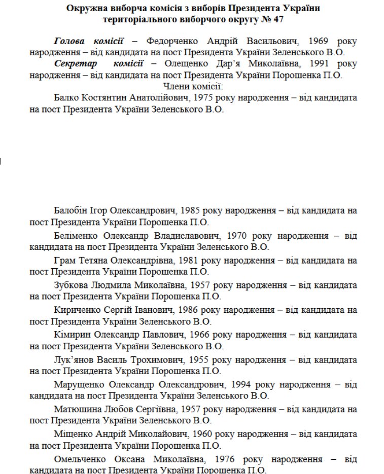 Список членов окружной комиссии в Славянске на второй тур президентских выборов