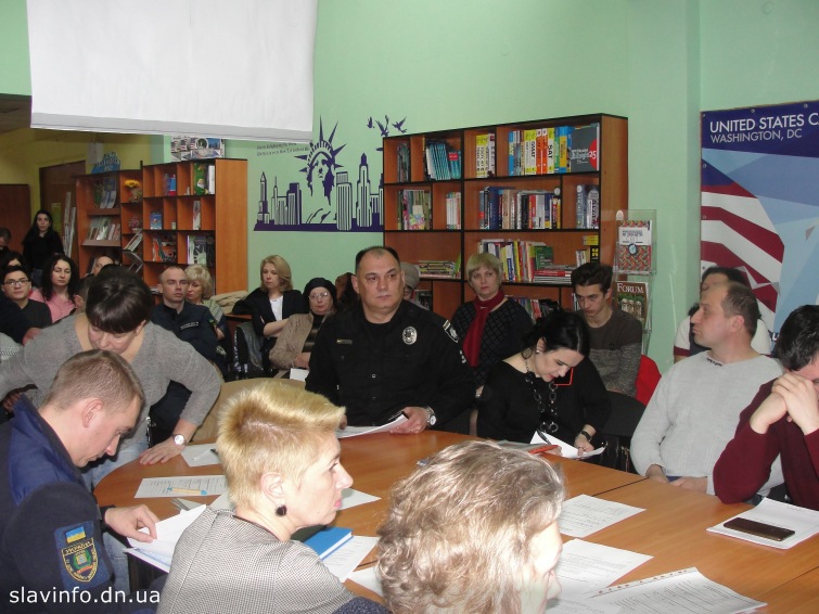 Сегодня, 26 марта, в Центральной библиотеке проходило заседание рабочей группы по безопасности Форума местного развития Славянска. На заседании были сотрудники полиции, представители ООН, чиновники городского совета, представители общественных организаций города и района.