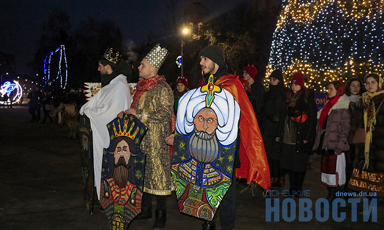 Вечером рождественский театрализованный вертеп студенты провели у главной елки Славянска – на центральной площади. Студенты УАЛ, переодетые в библейские персонажи, пели песни, рассказывали о Рождестве, колядовали.