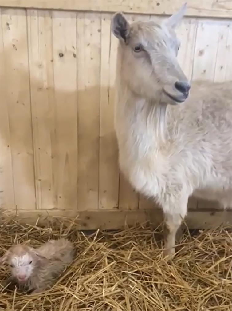 Напередодні весни альпійська коза Мішель народила двох козенят.
