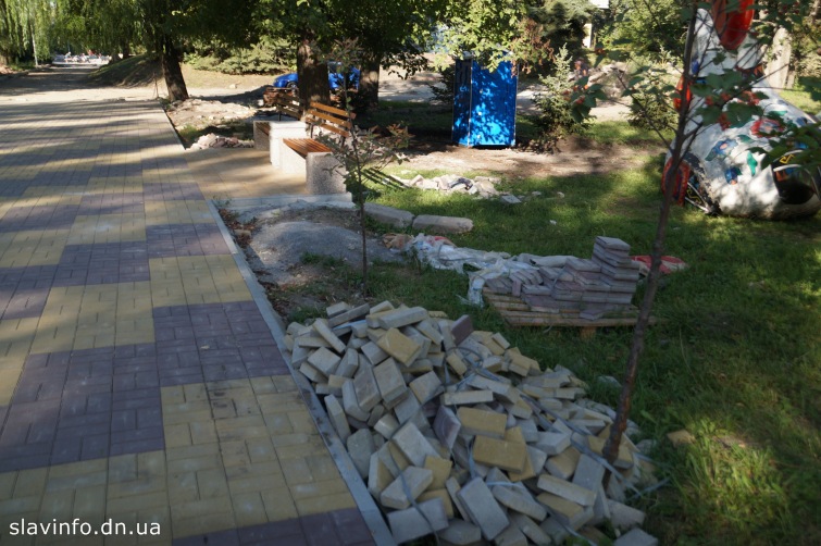 Взагалі, усі роботи в парку, згідно нового графіку робіт повинні закінчитися у жовтні цього року. Але, наскільки це все реально вже ніхто не може спрогнозувати. За тиждень до Дня міста, судячи з того, що сьогодні є в у парку, малоймовірно що встигнуть. Плитка не укладена ні на центральній алеї, ні на площі парку. А саме там плануються проводити заходи до звільнення міста від нацистських загарбників.