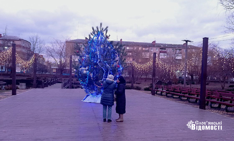Парк Шовковичний прикрасили ялинкою. Встановили її біля сцени-ракушки та прикрасили гірляндами на іграшками.