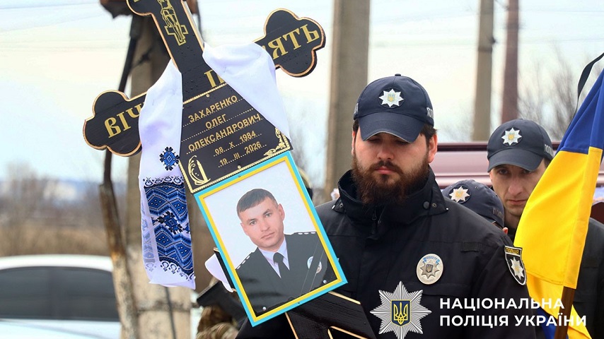 На Донеччині попрощались із загиблим поліцейським Олегом Захаренком.