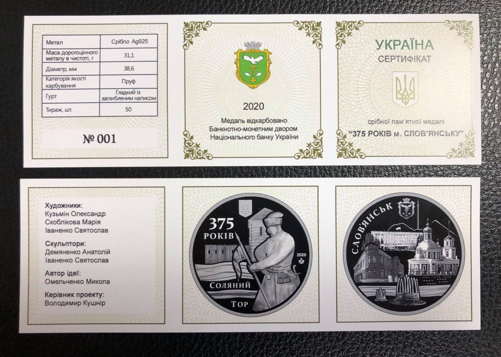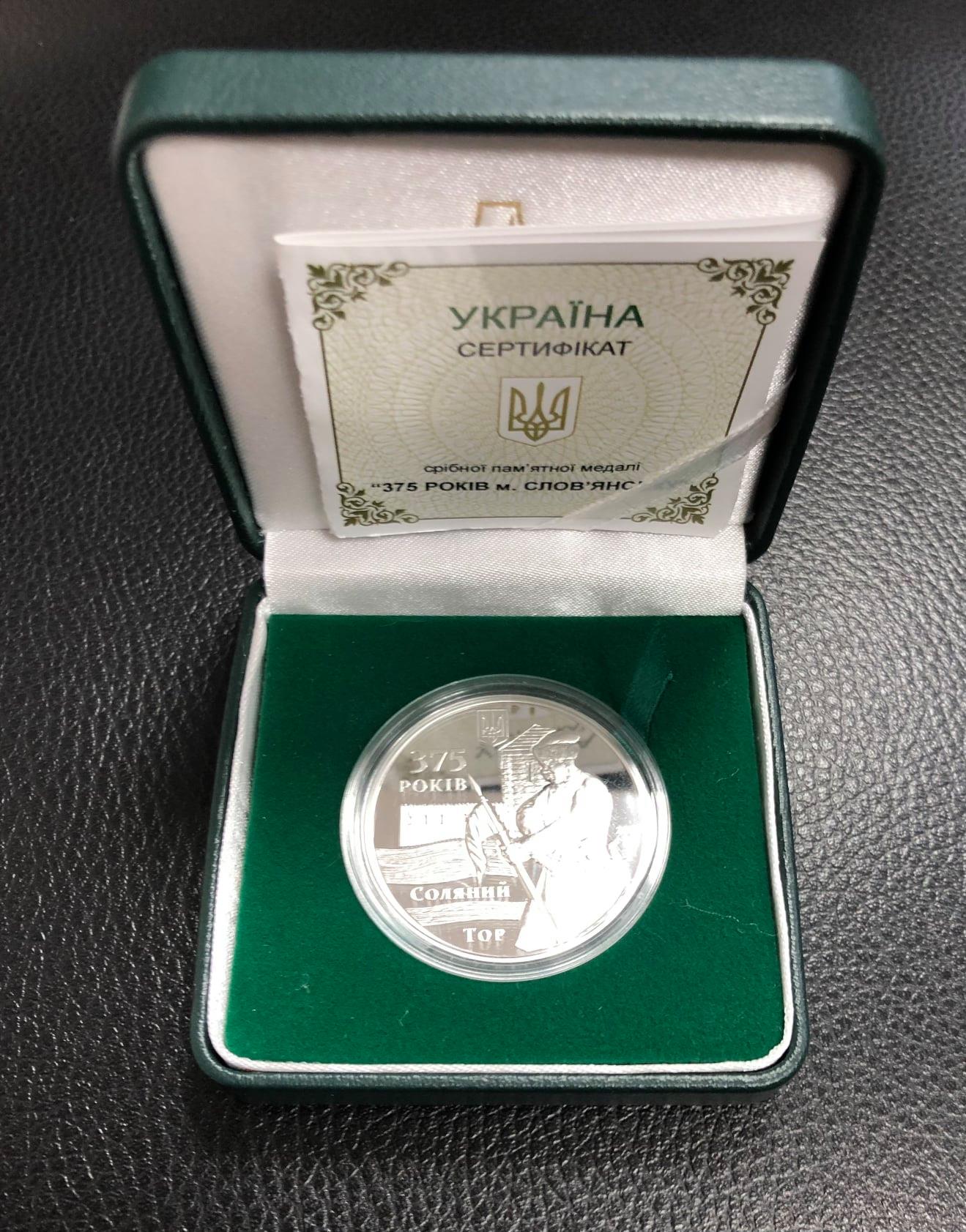 “Сьогодні музей отримав цінний і цікавий подарунок від колекціонера Миколи Омельченка – пам’ятну презентаційну медаль виробництва монетного двору Національного банку України. Медаль присвячена 375-річчю заснування міста Слов’янська, виготовлена з мідно-некільового сплаву діаметром 35 мм. Тираж медалі символічний – 375 штук.