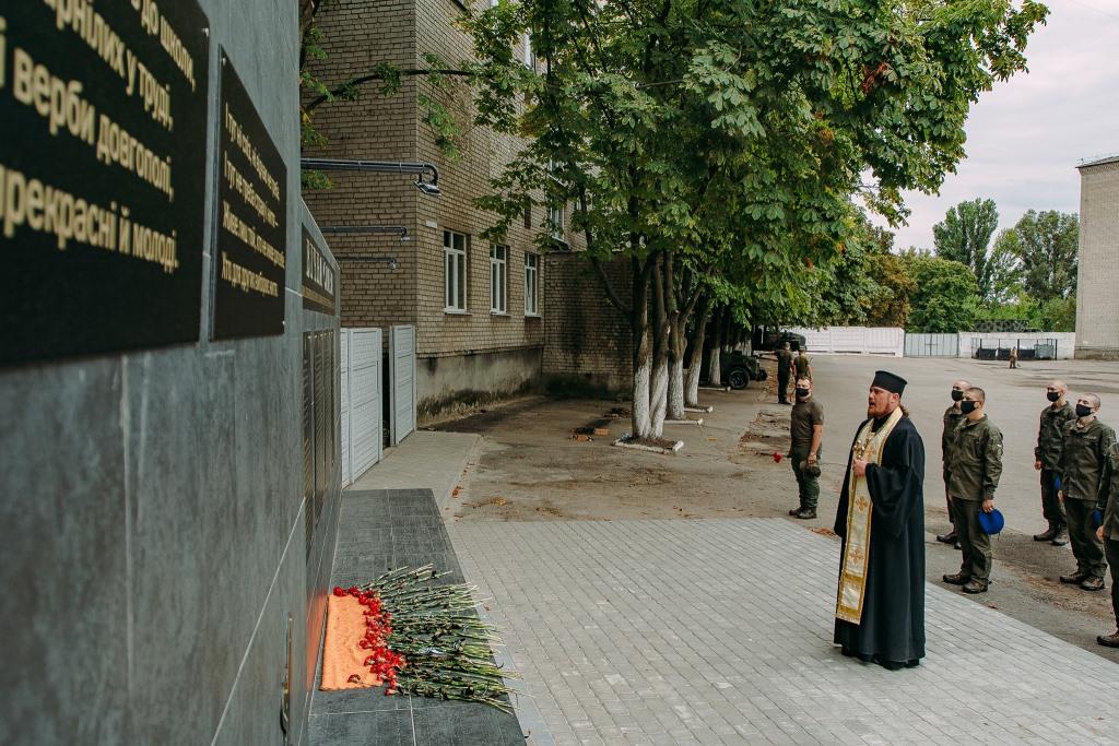 У Слов’янському полку пройшла панахида по полеглим на меморіальній стелі пам’яті. Службу провів військовий капелан отець Діонісій. Загиблих вшанували хвилиною мовчання.