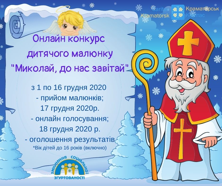 До Дня Святого Миколая оголошуємо конкурс дитячого малюнку «Миколай, до нас завітай»!, пише у Фейсбук Центр соціальної згуртованості у місті Слов’янськ.