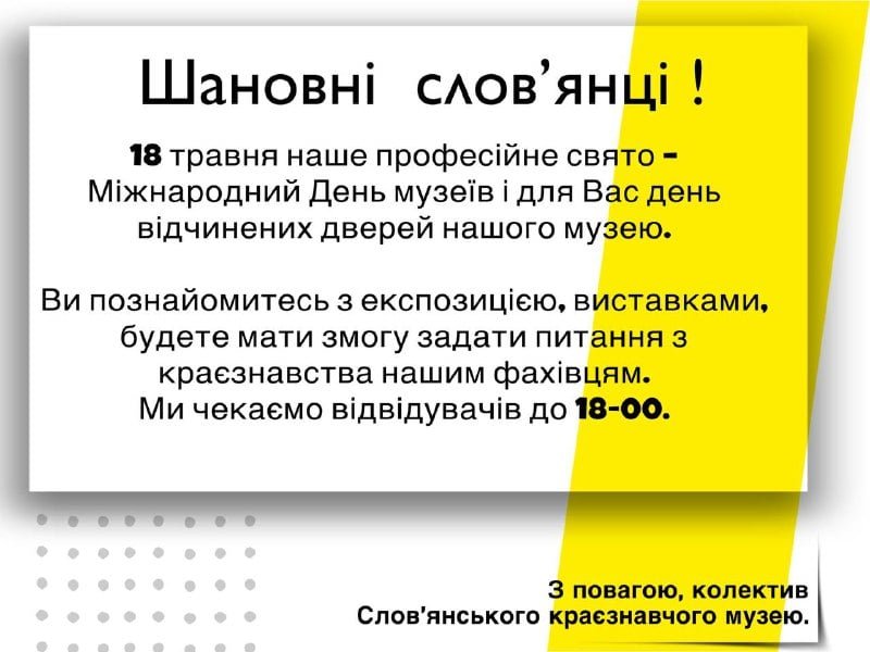 18 травня відзначають Міжнародни День Музеїв. Слов’янськ долучиться до святкування.