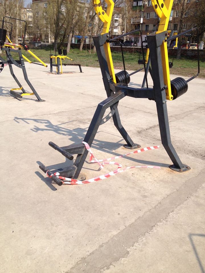 У Слов’янську на спортмайданчику хтось зруйнував огороджувальні стрічки та вивіски. Фото