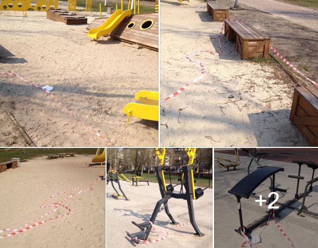 “Шановні слов’янці! Звертаю вашу увагу на те, що в зв’язку з карантином щодо поширення коронавірусної інфекції, суворо заборонено відвідувати місця відпочинку (парки, сквери, дитячі та спортивні майданчики). Фото зроблені 31.03.2020 р. в парку. Всі огороджувальні стрічки та вивіски зруйновано нашими мешканцями. Залишайся вдома! – коментує фото Олійник.