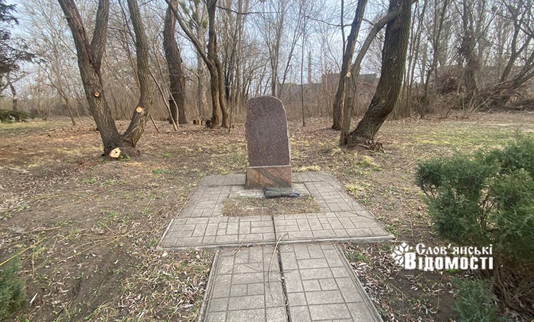 У Слов’янську невідомі пошкодили меморіал пам’яті загиблим під час окупації міста мирним жителям, встановлений у парку Шовковичний. Вандали зняли табличку з написом і розбили.