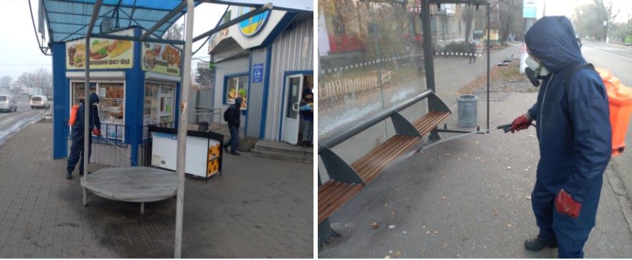 Так,  співробітники 6-го Державного пожежно-рятувального загону Головного управління ДСНС України у Донецькій області провели у м. Слов’янськ дезінфекцію зупинок громадського транспорту. Для обробки використовувалася спеціальна дезактивуюча суміш. Захід проводився за ініціативою місцевих органів влади. Всього було оброблено 39 зупинок.