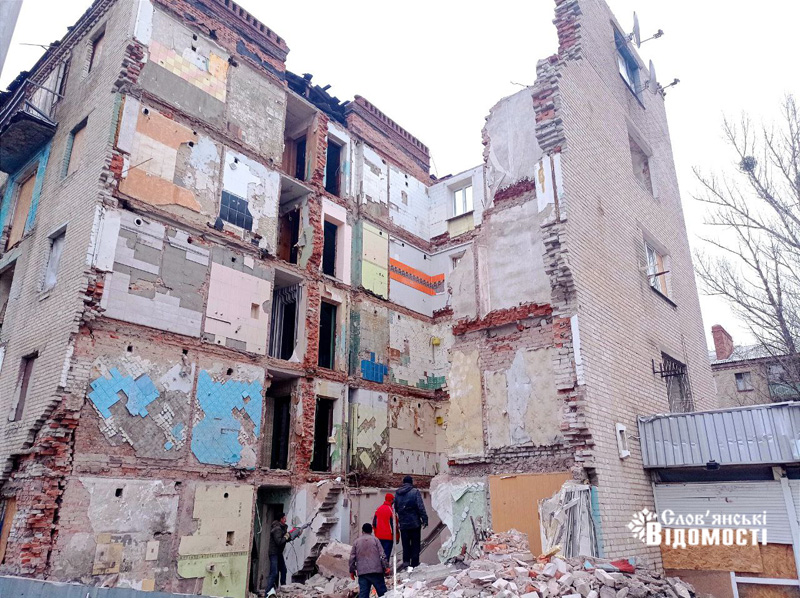 У Слов’янську продовжується демонтаж під’їзду п’ятиповерхівки (фото)