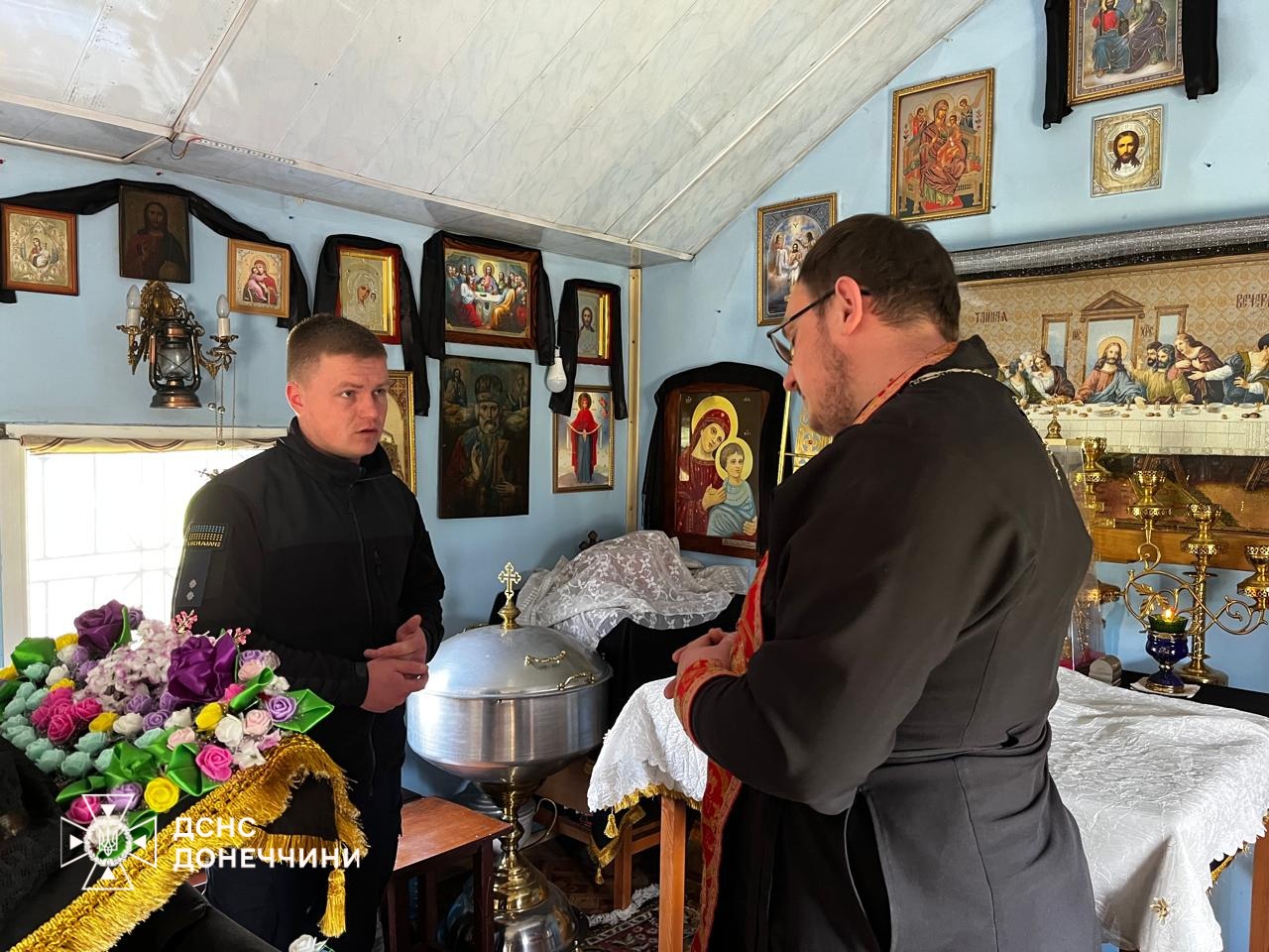 Рятувальники Покровського та Краматорського районних управлінь зустрілися зі священнослужителями, щоб нагадати основні правила пожежної безпеки під час богослужінь. Вони перевірили, наскільки готові храми до великого напливу вірян: оглянули евакуаційні виходи, наявність вогнегасників та інші засоби пожежогасіння.
