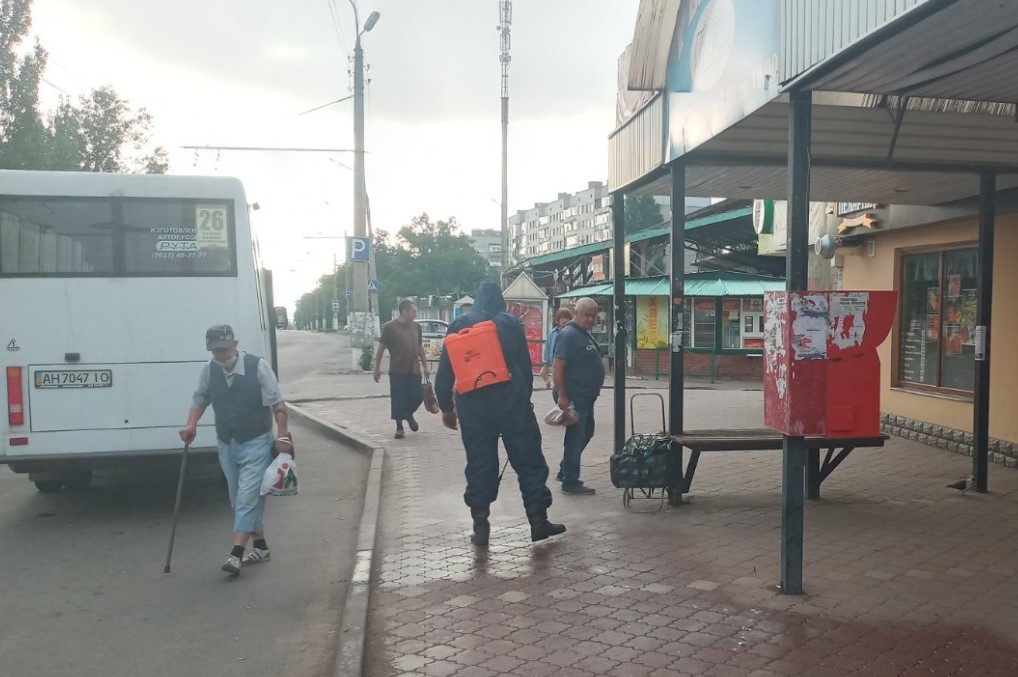 Так, протягом 17 липня співробітники 6-го Державного пожежно-рятувального загону Головного управління ДСНС України у Донецькій області за ініціативою місцевих органів влади провели дезінфекцію зупинок громадського транспорту у м. Слов’янськ. Для обробки використовувалася спеціальна дезактивуюча суміш. Всього було оброблено 39 зупинок.