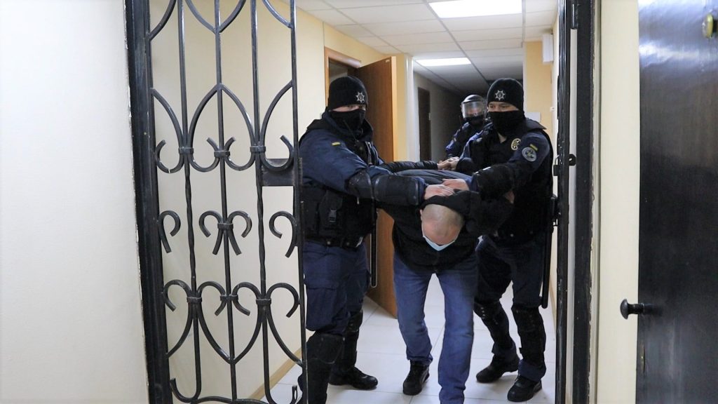 Під час заходу відпрацювали витіснення значного скупчення агресивно налаштованих людей, евакуацію судді з зали засідань та нейтралізацію найагресивніших порушників у натовпі.