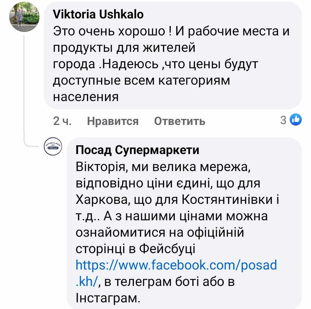 У коментарях під дописом про відкриття супермаркету, жителі цікавляться: чи будуть ціни на продукти доступними. Представник мережі відповів, що вартість товарів буде однаковою для всіх міст України.