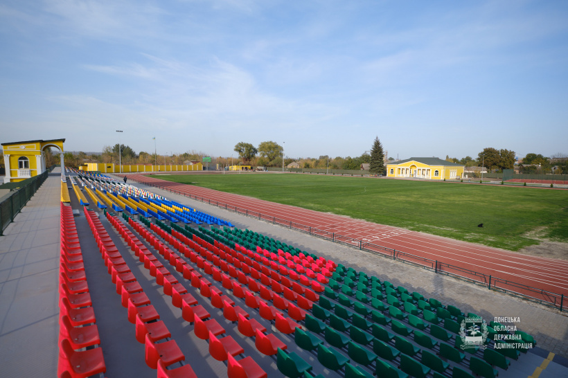 Навколо футбольного поля 105х68 метрів з натуральним газоном, який є одним із кращих у Донецькій області, облаштували бігові доріжки з сучасним гумовим покриттям. Оновили трибуни, на яких встановили 2,5 тисячі глядацьких сидінь. Збудували тенісний корт, універсальний майданчик для гри у волейбол та баскетбол, міні-футбольне поле. Окрім цього, обладнали зовнішнє освітлення та сучасне електронне табло, встановили огорожу і зробили благоустрій території.