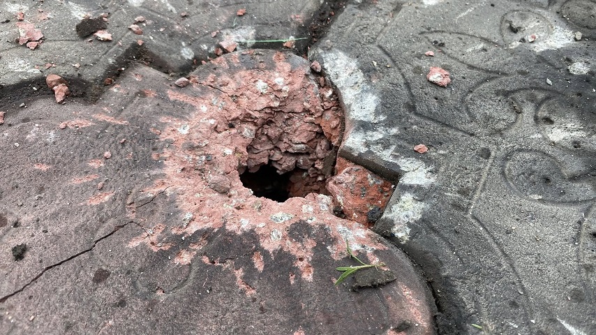 Близько 13:50 зафіксовано удар по міській інфраструктурі. За інформацією начальника Слов’янської МВА, снаряд влучив у дорожнє покриття в центрі.