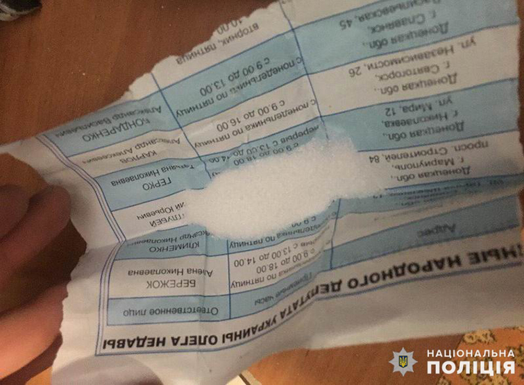 Також виявлено згорток із порошком білого кольору, який, за попередніми даними, також є наркотичною речовиною.