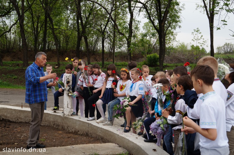 Дети узнали, что именно проходило на этом блокпосту, начиная со 2 мая и заканчивая 5 июля 2014 г, когда Славянск был освобожден. Волонтер Ярослав Золотой, который организовывает обустройство памятного места, рассказал детям об основных боях, проходивших здесь в 2014 г. Речь шла о боях 5 мая и 26 июня 2014 г.