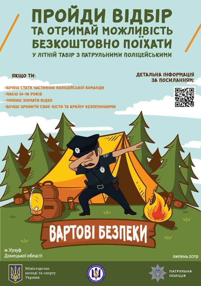 Якщо тобі від 14 до 16 років, ти креативний, творчий та хочеш безкоштовно поїхати у Всеукраїнський дитячий табір “Вартові безпеки” з патрульними поліцейськими — тобі до нас, пише у Фейсбук Патрульна поліція Краматорська та Слов’янська