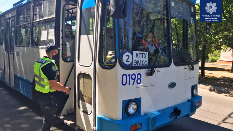 В общественном транспорте Славянска полицейские проверяют пассажиров на наличие масок