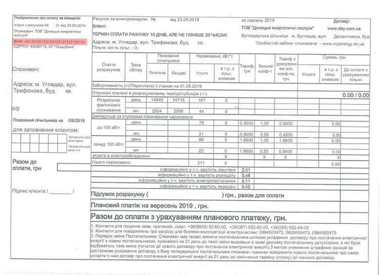 В октябре жители Донецкой области получат платежки за электроэнергию за сентябрь с новыми реквизитами.