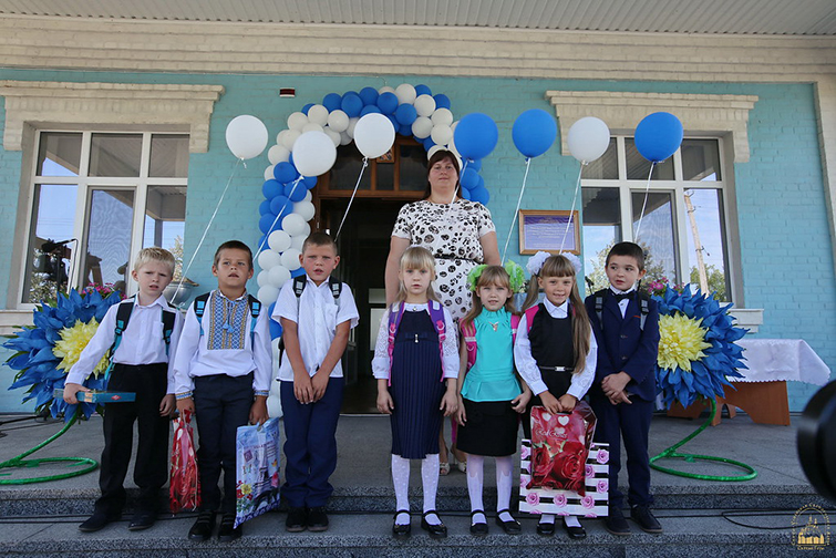Маленькие школьники вместе со своим учителем прошли в свой класс, где произошло их знакомство с первой учительницей Поповой Светланой Петровной. На входе в школу от Святогорской Лавры каждый ученик получил ранец со школьными принадлежностями и сладости.