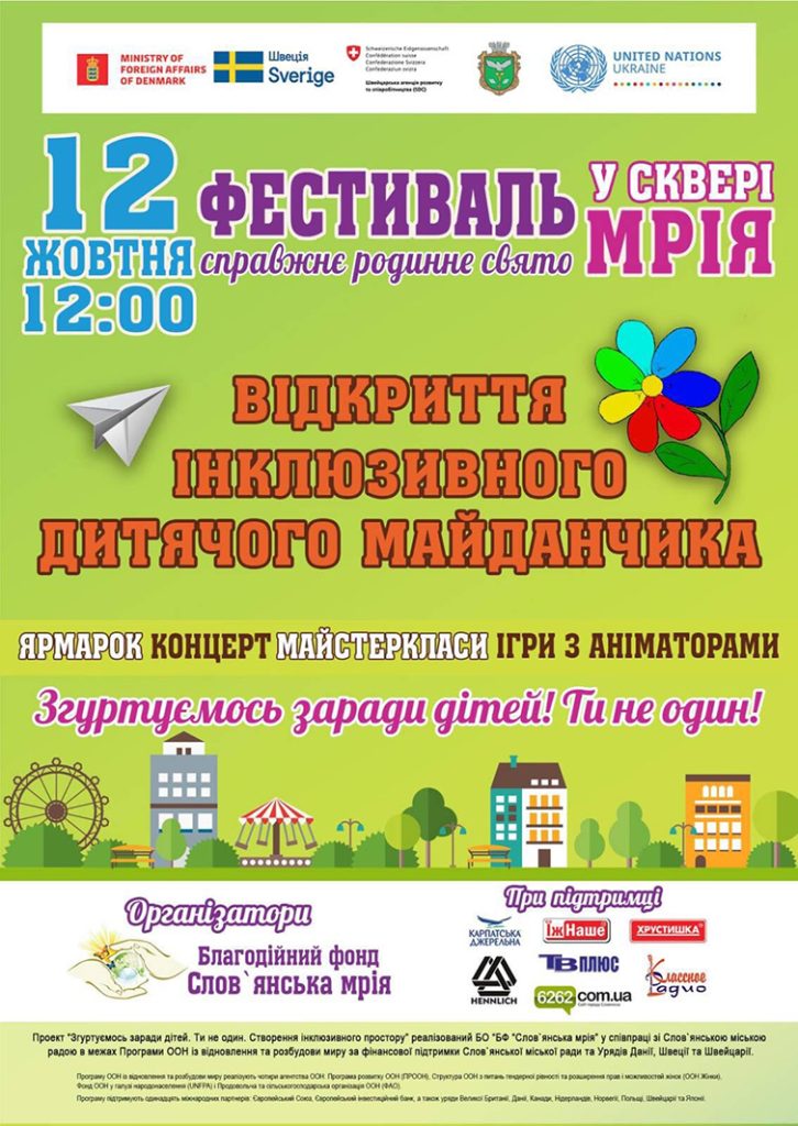 12 октября в сквере” Мрия” пройдет фестиваль “Настоящий семейный праздник”, во время которого состоится открытие инклюзивной площадки.